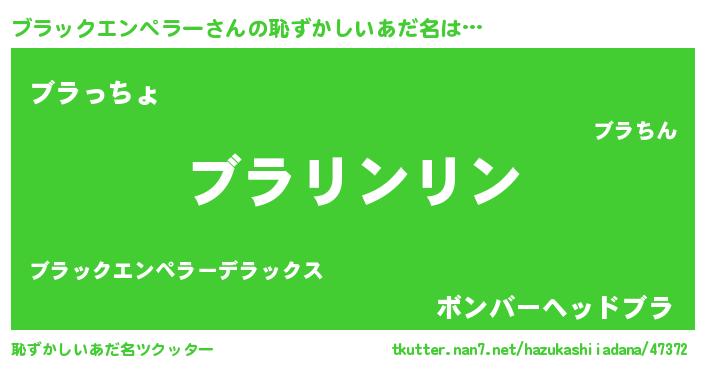| 男性向けラノベタイトル風あだ名 | 『転生したらブラックエンペラーだった件』 |