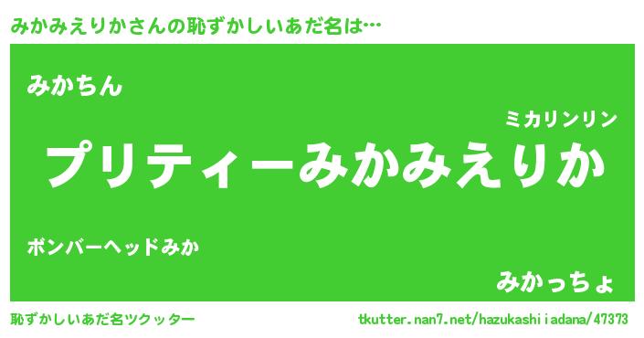 | ヘコむあだ名 | 『みかもー』『みかみえりか(笑)』 |