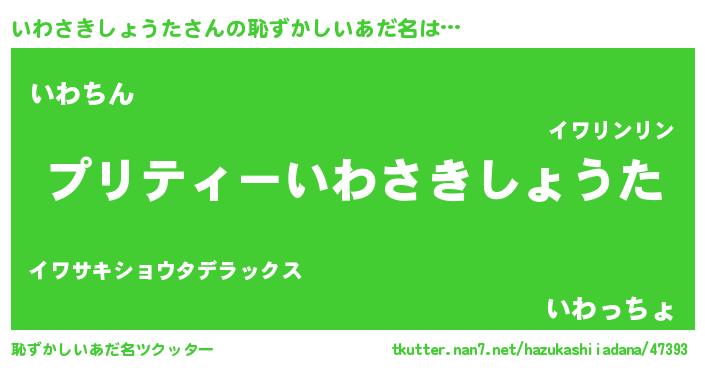 | 男性向けラノベタイトル風あだ名 | 『いわさきしょうたに滅ぼされるだけの簡単なお仕事です』 |