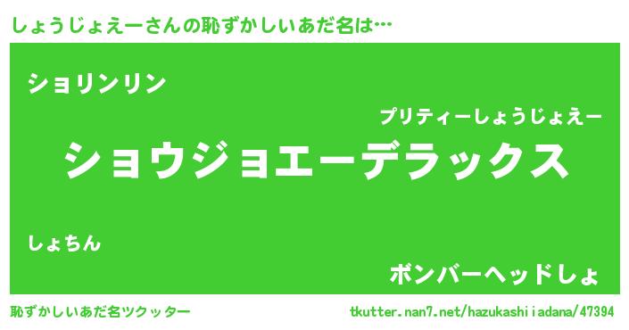 | 意味不明あだ名 | 『自称しょうじょえー』 |