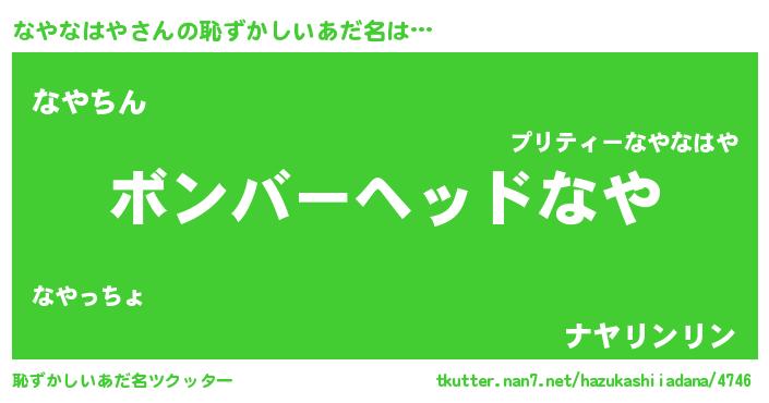 | ヒーロー風カッコイイあだ名 | 『天空の使者なやなはや』『炎刃騎士ナヤ』 |