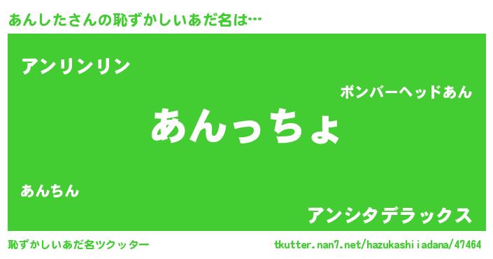 | 男性向けラノベタイトル風あだ名 | 『アンシタスレイヤー』 |