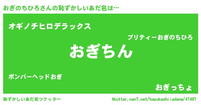| 意味不明あだ名 | 『永久保存おぎのちひろ』 |