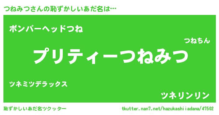 | 意味不明あだ名 | 『ペロリンつねみつ』『永久保存つねみつ』 |