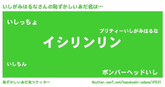 | 意味不明あだ名 | 『とにかく怪しいいしがみはるな』 |