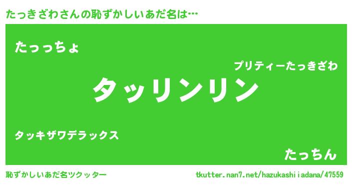 | 意味不明あだ名 | 『とにかく怪しいたっきざわ』 |