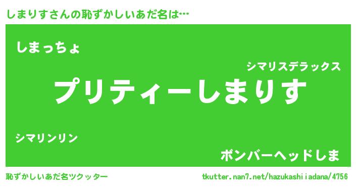 | 胡散臭い通販商品みたいなあだ名 | 『モテモテ間違いなし水晶球…その名も「しまりす」』 |