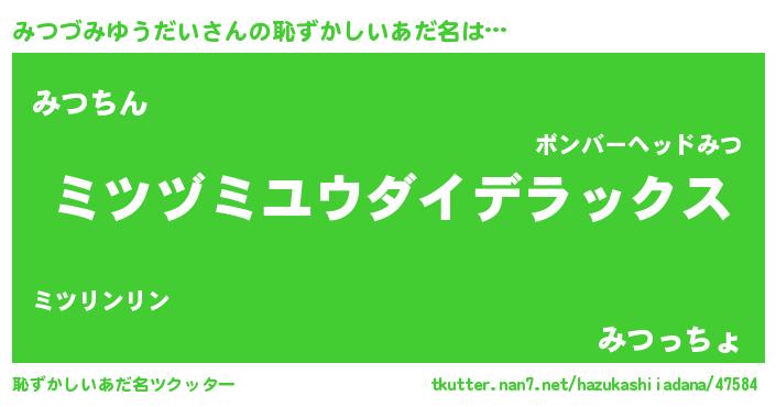 | 意味不明あだ名 | 『自称みつづみゆうだい』 |