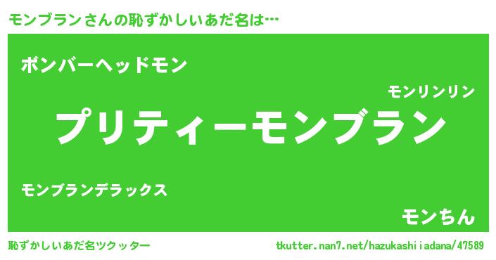 | 意味不明あだ名 | 『住所不定無職モンブラン(14歳)』 |