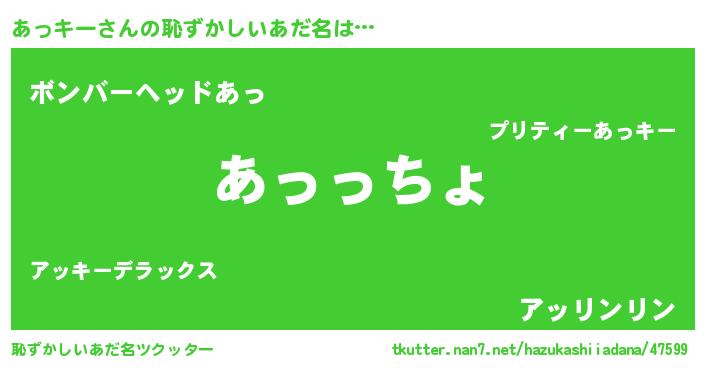 | 意味不明あだ名 | 『住所不定無職あっキー(98歳)』 |