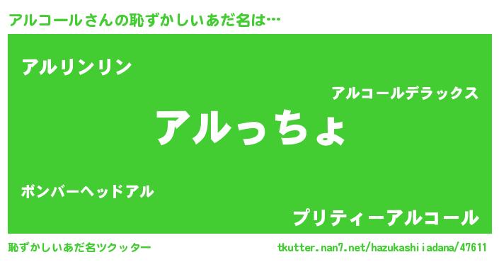 | 意味不明あだ名 | 『アルコールフォーエバー』 |