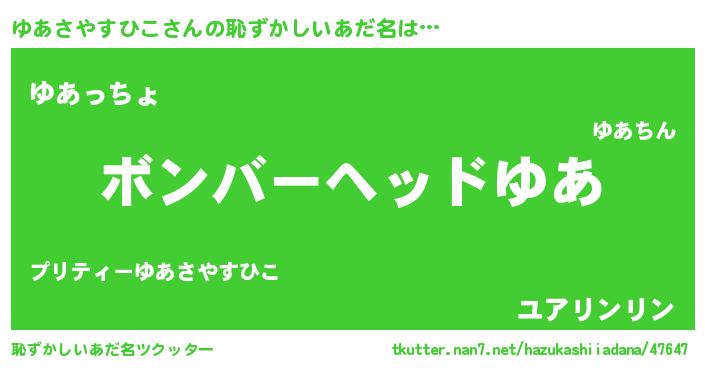 | ヘコむあだ名 | 『酢こんぶ』『ゆあっぺ』 |