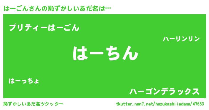 | 意味不明あだ名 | 『永久保存はーごん』『ペロリンはーごん』 |