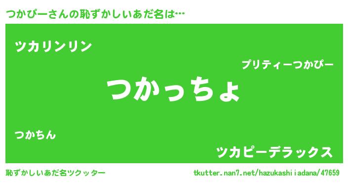 | 男性向けラノベタイトル風あだ名 | 『この素晴らしい世界につかぴーを!』 |