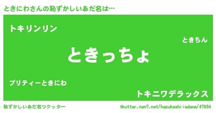 | ヒーロー風カッコイイあだ名 | 『仮面トキダー』『ウルトラときにわマン』 |