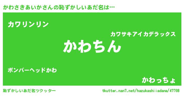 | ヘコむあだ名 | 『かわさきあいか(笑)』『かわお』 |