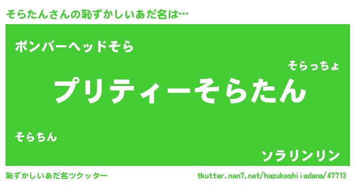 | ヘコむあだ名 | 『そらにー』『そらを』『レバニラ』 |