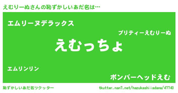 | 意味不明あだ名 | 『えむりーぬフォーエバー』 |