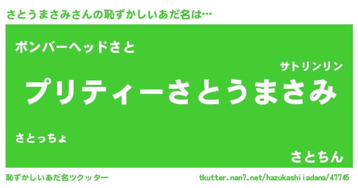 | ヘコむあだ名 | 『さともー』『さとうまさみ(笑)』 |