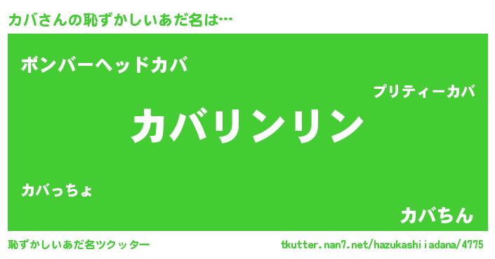 | 意味不明あだ名 | 『とにかく怪しいカバ』『めかぶ科カバ属』 |