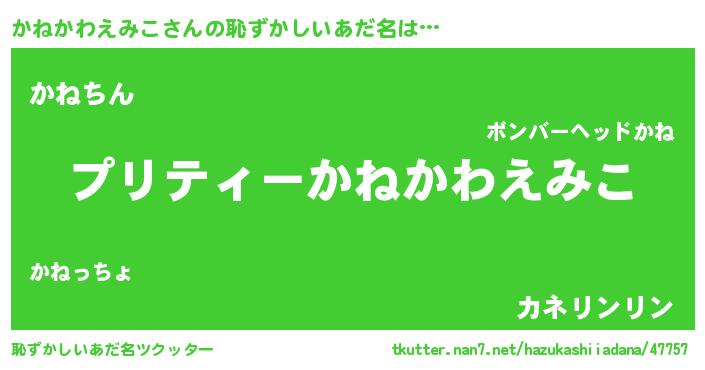 | ヘコむあだ名 | 『かねふぇ~』『かねかわえみこ(遠い目)』 |