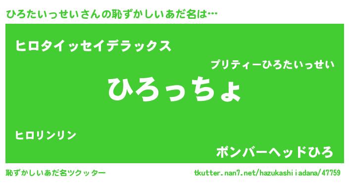 | 男性向けラノベタイトル風あだ名 | 『ひろたいっせい~年齢イコール彼女いない歴の魔法使い~』 |
