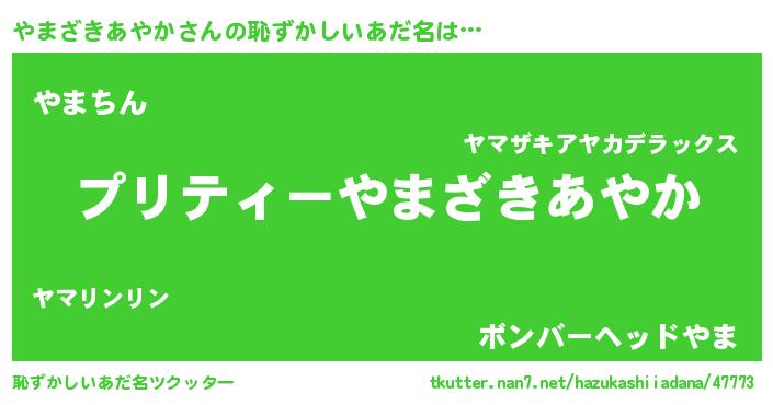 | ヘコむあだ名 | 『やまっふぃ~』『やまざきあやか(遠い目)』 |