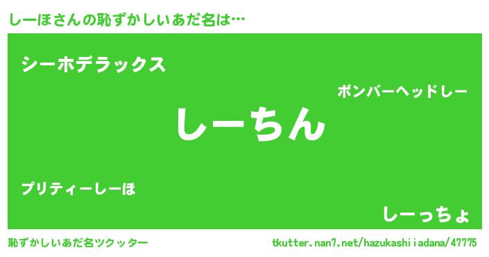 | 意味不明あだ名 | 『永久保存しーほ』『自称しーほ』 |