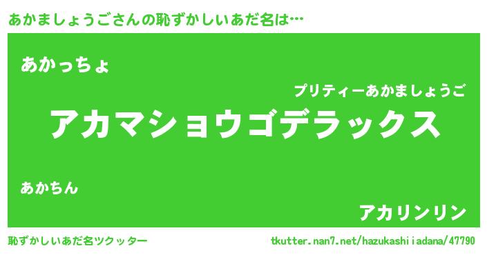 | 意味不明あだ名 | 『自称あかましょうご』 |