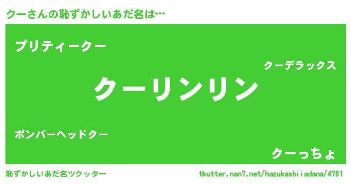 | ヘコむあだ名 | 『クー太郎』『クーにゅー』 |