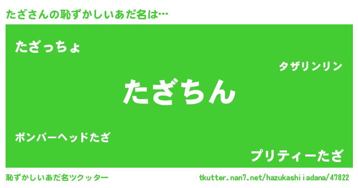 | ヘコむあだ名 | 『たざ(爆)』『酢こんぶ』『たざもー』 |