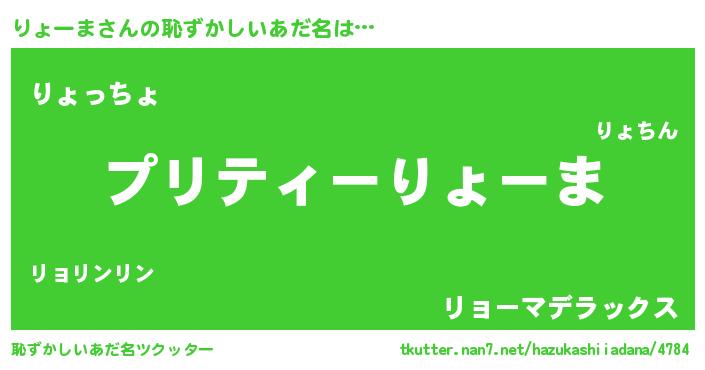 | 意味不明あだ名 | 『ペロリンりょーま』『自称りょーま』 |