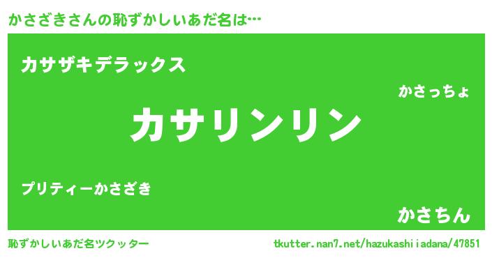 | ヒーロー風カッコイイあだ名 | 『炎刃騎士カサ』『超時空戦士カサザキ』 |