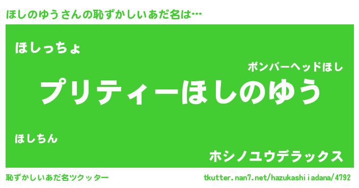 | 肩書あだ名 | 『ほしのゆう御曹司』『ほしのゆう大統領』 |