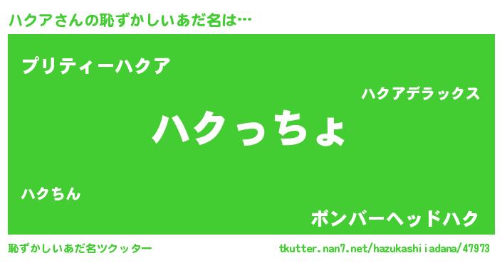 | 意味不明あだ名 | 『ハクアフォーエバー』『ペロリンハクア』 |