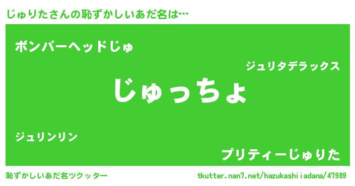 | 意味不明あだ名 | 『じゅりたフォーエバー』『自称じゅりた』 |
