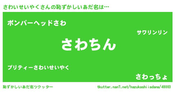 | ポケモン風あだ名 | 『サーワイ』『ゼニサワ』 |