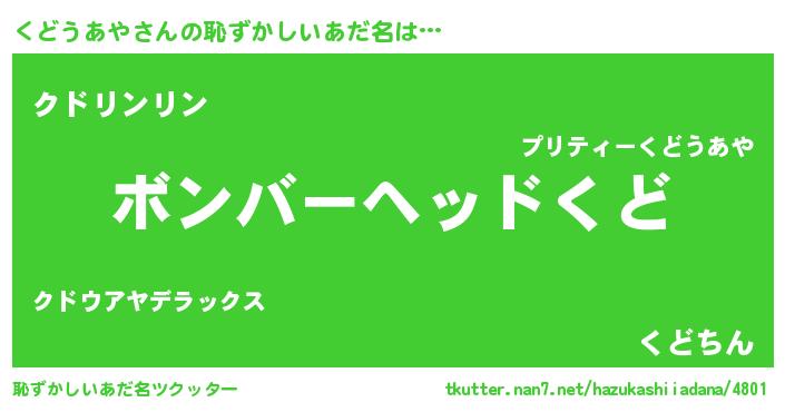 | ヒーロー風カッコイイあだ名 | 『正義の使者くどうあや』『暗黒騎士クド』 |