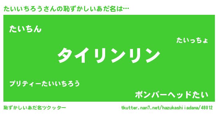 | ヘコむあだ名 | 『たいっ子』『たいいちろう(笑)』 |