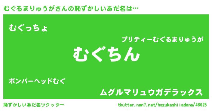 | 意味不明あだ名 | 『永久保存むぐるまりゅうが』 |