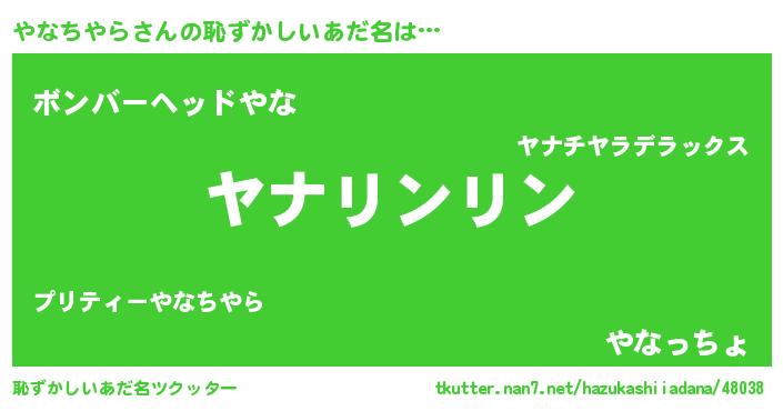 | 男性向けラノベタイトル風あだ名 | 『やなちやらの嫁は女の子じゃないと思った?』 |