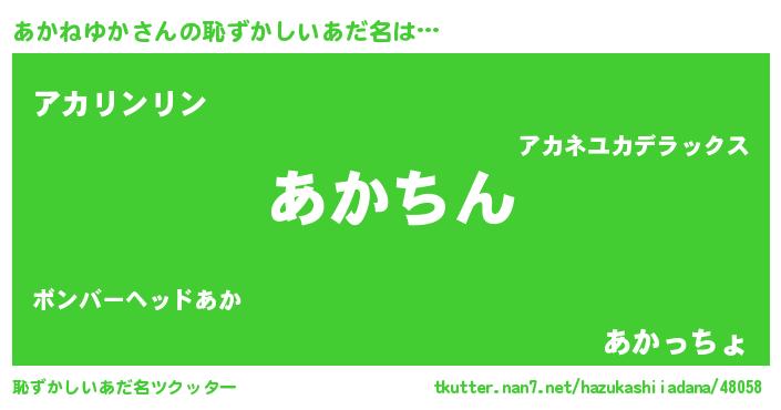 | 意味不明あだ名 | 『永久保存あかねゆか』『自称あかねゆか』 |