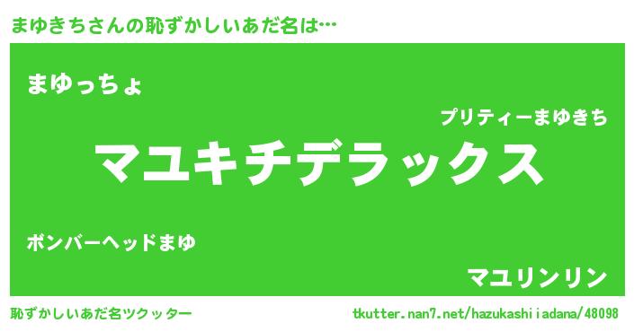 | ヒーロー風カッコイイあだ名 | 『仮面マユダー』『究極戦士マユキチ』 |