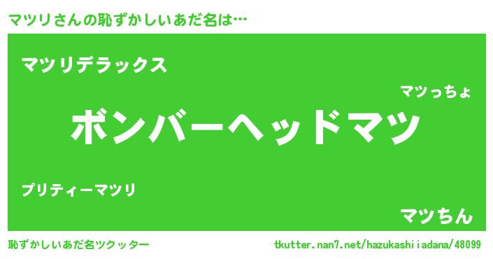 | ヘコむあだ名 | 『マツリ(爆)』『豆乳』『マツにゅー』 |