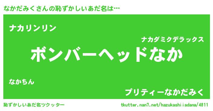 | ヒーロー風カッコイイあだ名 | 『慈愛の使者なかだみく』『黄金騎士ナカ』 |