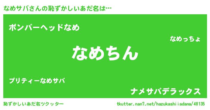 | 意味不明あだ名 | 『永久保存なめサバ』『自称なめサバ』 |