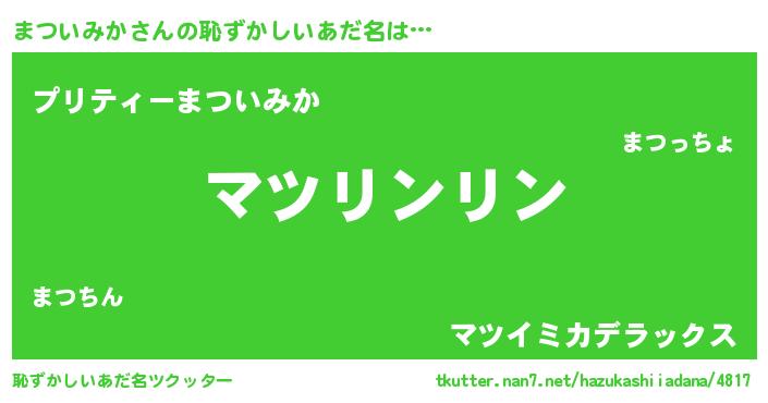 | 意味不明あだ名 | 『とにかく怪しいまついみか』 |