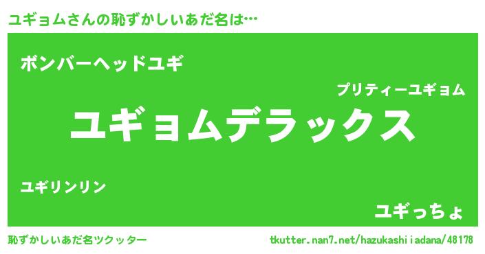 | ヘコむあだ名 | 『レバニラ』『ユギっふぃ~』 |