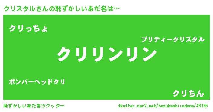 | 男性向けラノベタイトル風あだ名 | 『クリスタルの嫁は女の子じゃないと思った?』 |