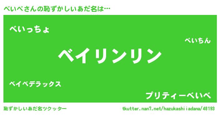 | ヒーロー風カッコイイあだ名 | 『魔戒騎士ベイ』『ウルトラべいべマン』 |